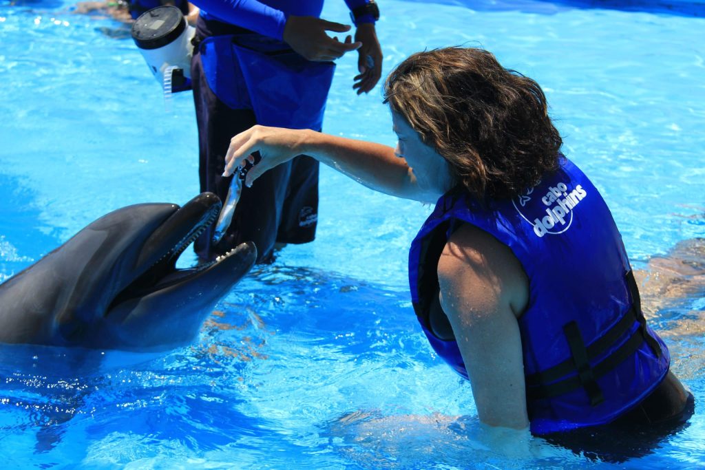 - Cabo-Adventures offers a wonderful swim with the Dolphins experience. They have two locations. One in Downtown Cabo and another closer to San Jose del Cabo. You interact with the dolphins in a giant pool environment. I absolutely love Dolphins, so I found this whole experience magical. When we visited Ixtapa years ago when I was pregnant with Cole, I wasn’t able to do the dolphin adventure with our family because apparently dolphins know when you are pregnant and tend to get a little rough. Who knew? I have now snorkeled with Spinner Dolphins in Kauai and done this wonderful encounter in Cabo. I recommend it if you love interacting with wildlife. That smile on my face is pure joy.