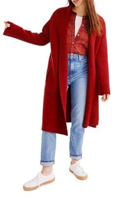 I haven’t met a sweater coat from J.Crew or Madewell I didn’t love! They are just the perfect topper for any casual outfit. They pack easily and don’t wrinkle. I love the red color of this Madewell Rivington Sweater Coat. It will definitely have to come home with me!