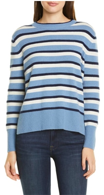 The Nordstrom Anniversary Sale is a great place to pick up cashmere sweaters. Usually there are so many it makes it difficult to choose. This year there seems to be a wider selection of synthetic or wool blend options. These two cashmere options are definitely on my list. First, is the Nordstrom Signature Hi/Low Sweater in this fabulous blue stripe. The Nordstrom Signature brand is fabulous quality. I am hoping to try this on in store. My only fear is that it may be too warm for our mild CA climate. The other is Lafayette 148 New York Boatneck Sweater. This sweater is part wool but looks light weight and the drape is flattering. I included a picture of the back because I think the seaming in the back makes the sweater.