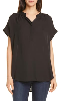 Vince makes impeccable clothes and often are some of my most worn pieces. The quality and drape of their clothing makes it well worth the price. Two tops that caught my eye are from Vince. First, this Crew Neck Tank. It is perfect for layering and I love the slightly longer length which can allow you to get away with leggings as pants. Here is hoping the white isn’t see through. I plan to pick up in the store and will let you know my findings. The Vince Shirred Neck Silk Blouse is another closet staple you will wear all the time. I have become partial to natural fabrics over time and a good silk blouse will last forever. I find the cut of this shirt to be universally flattering and can be tucked or worn loose with ease because of the fabulous drape.
