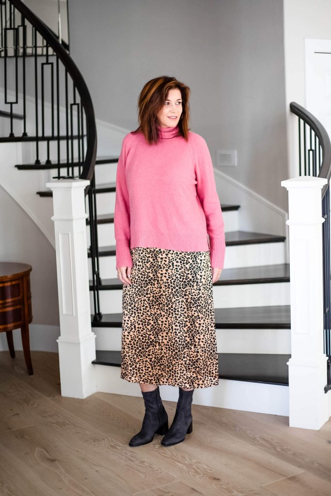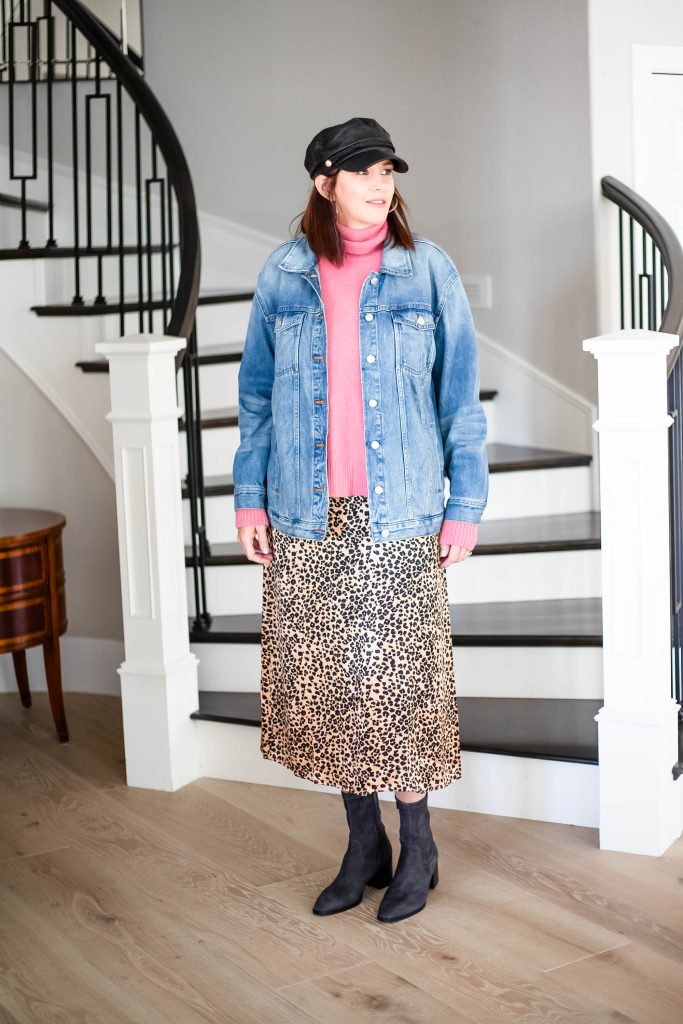- Even when the weather is finally cold, a slip dress is a perfect base layer for building an outfit on. I added this salmon turtleneck sweater from J.Crew and the Madewell Oversized Denim Jacket. Add your favorite boots and you are good to go! I am wearing the Aquatalia Tilly Weatherproof Booties from the Nordstrom Anniversary Sale. They are on sale for a fantastic $299 until Aug. Have you shopped the sale yet? See my picks here.