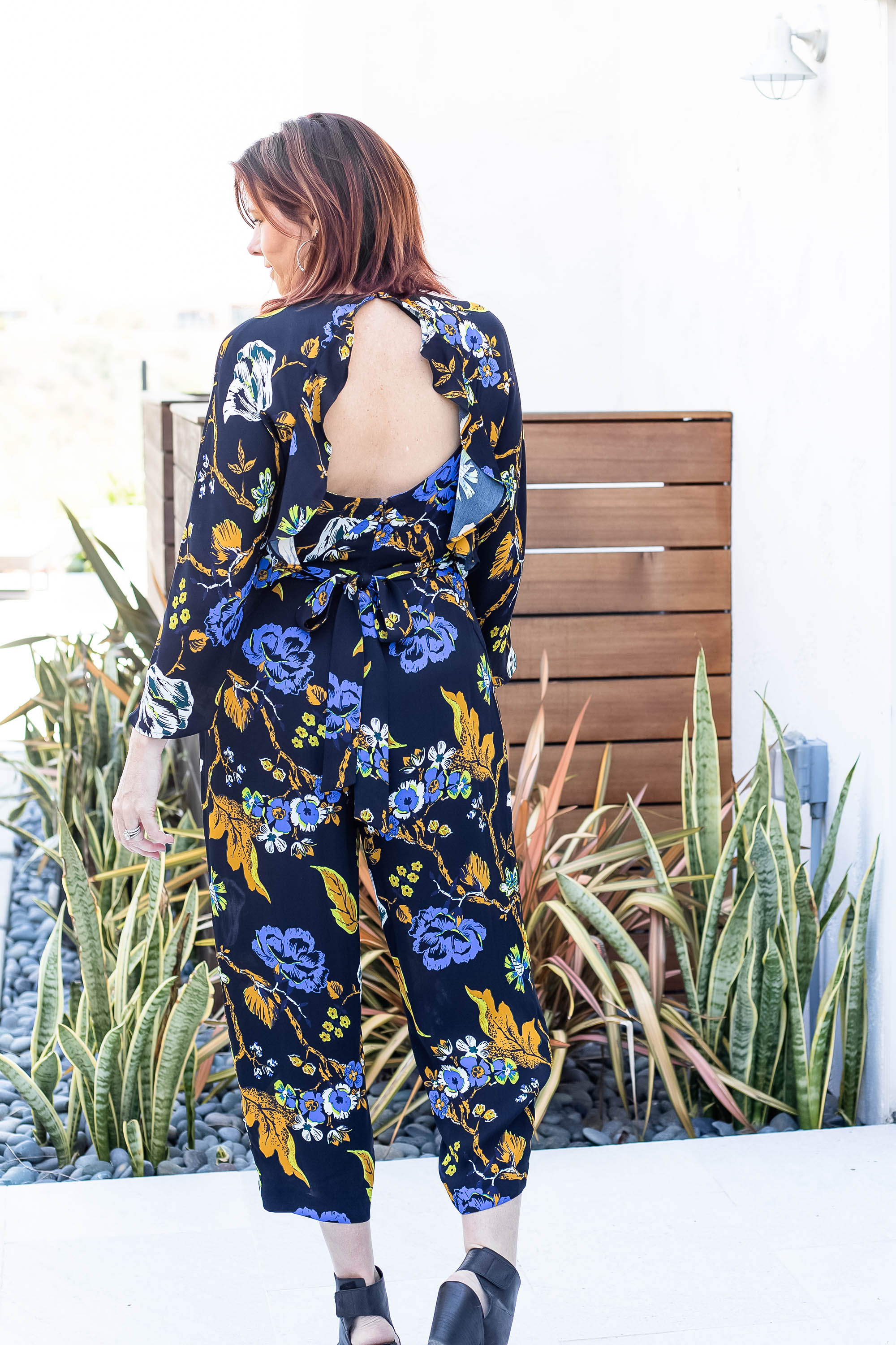 This is another London based designer and another jumpsuit. I find their clothes to be on the more conservative side for me. They have some amazing structured dresses and work attire. If modesty is your jam then Hobbs may be perfect brand for you. Hobbs clothing is so well made, I wanted to find more items to try. I spotted this jumpsuit first and it lured me in. Of course, for some reason the salesperson was overly pushy which drives me crazy. I don’t need items suggested to me. I know what I like and will look with my own eyes for what I want to try on. Ok! Rant over. I love the simple white flowers on this wide leg jumpsuit. The sleeve length is perfect and the silhouette is super flattering. And low and behold, the jumpsuit is long enough! I added a pop of color with my shoes.