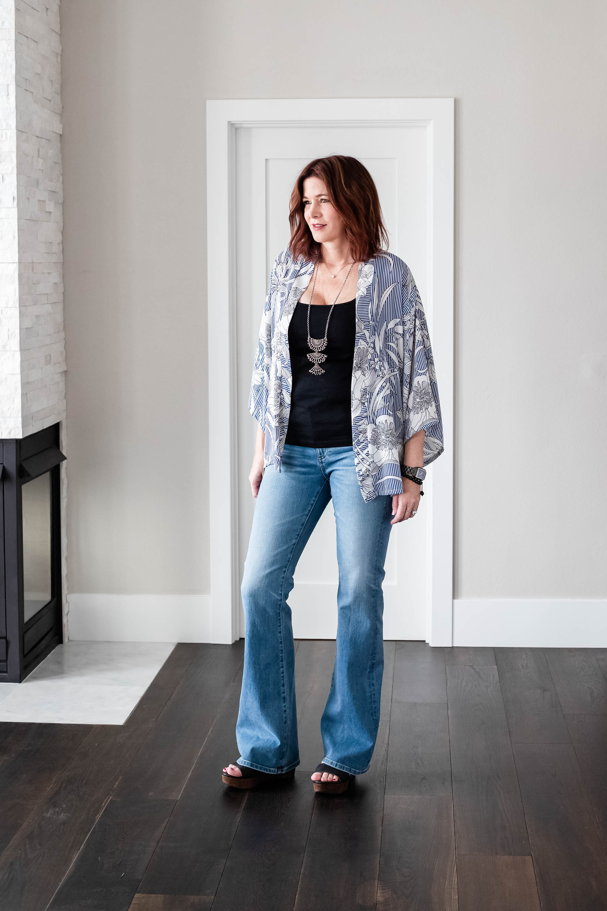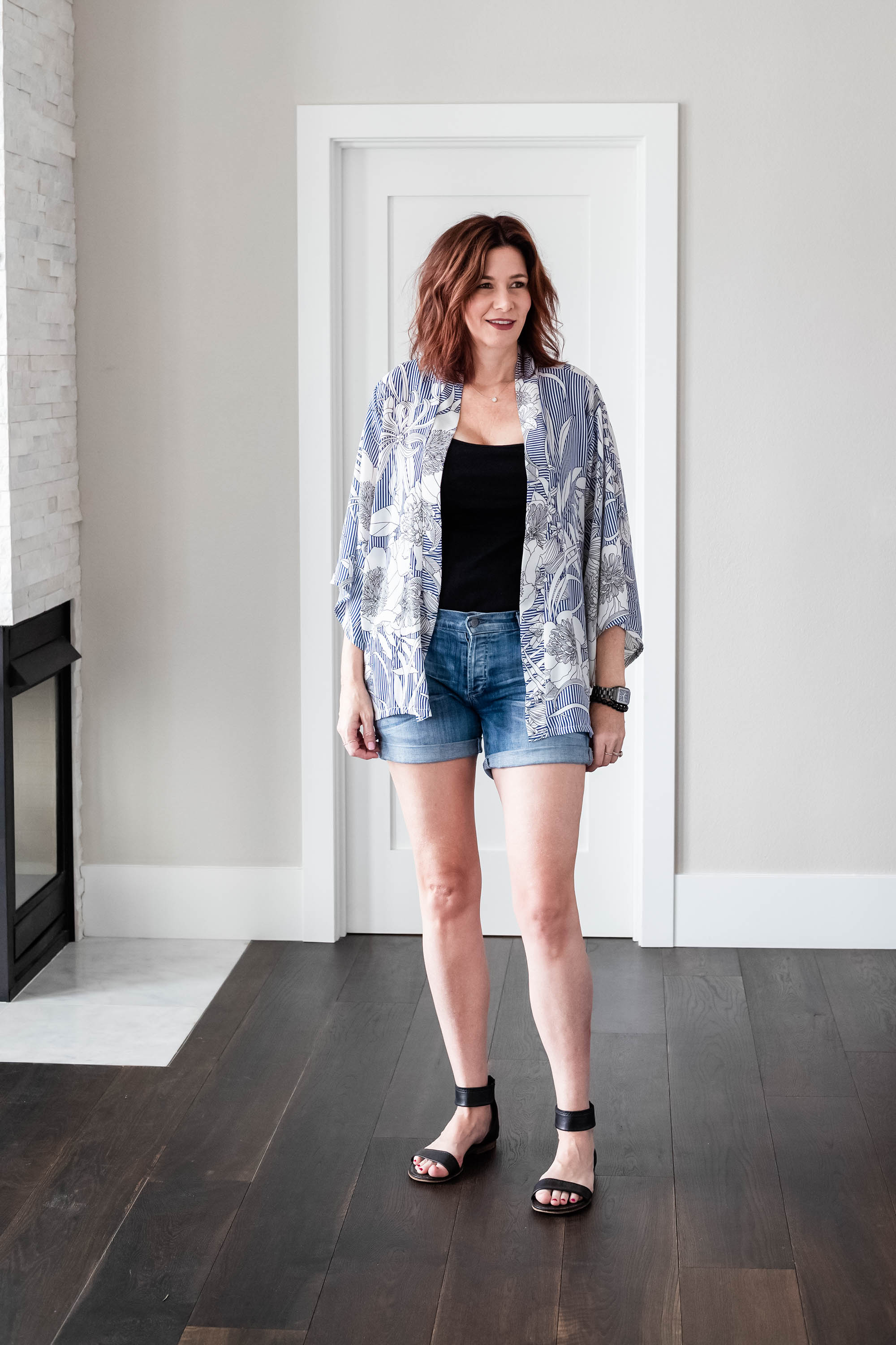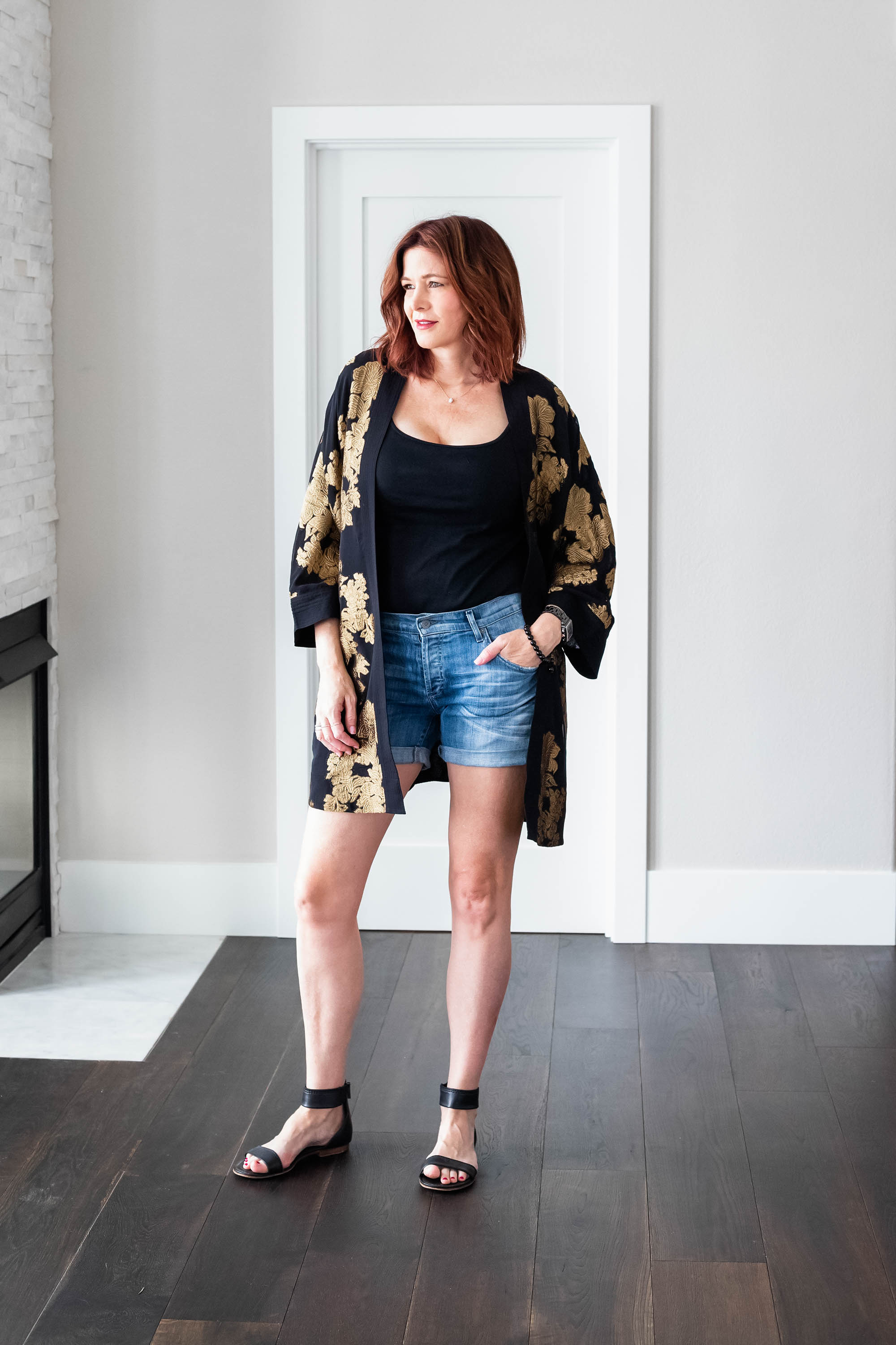 Do you own a kimono top yet? It is the quickest way to level up, any outfit and kimonos are hot right now. A kimono is super versatile and easy to style. Stores offer both evening kimono jackets and fun florals for everyday. They come in a ton of different lengths, cuts and patterns. You can surely find one to fit your style and your budget. The great thing is they never really go out of style so you can keep adding to your collection every year. Heck, my robe is a kimono I bought at Sudara. I use it all the time.