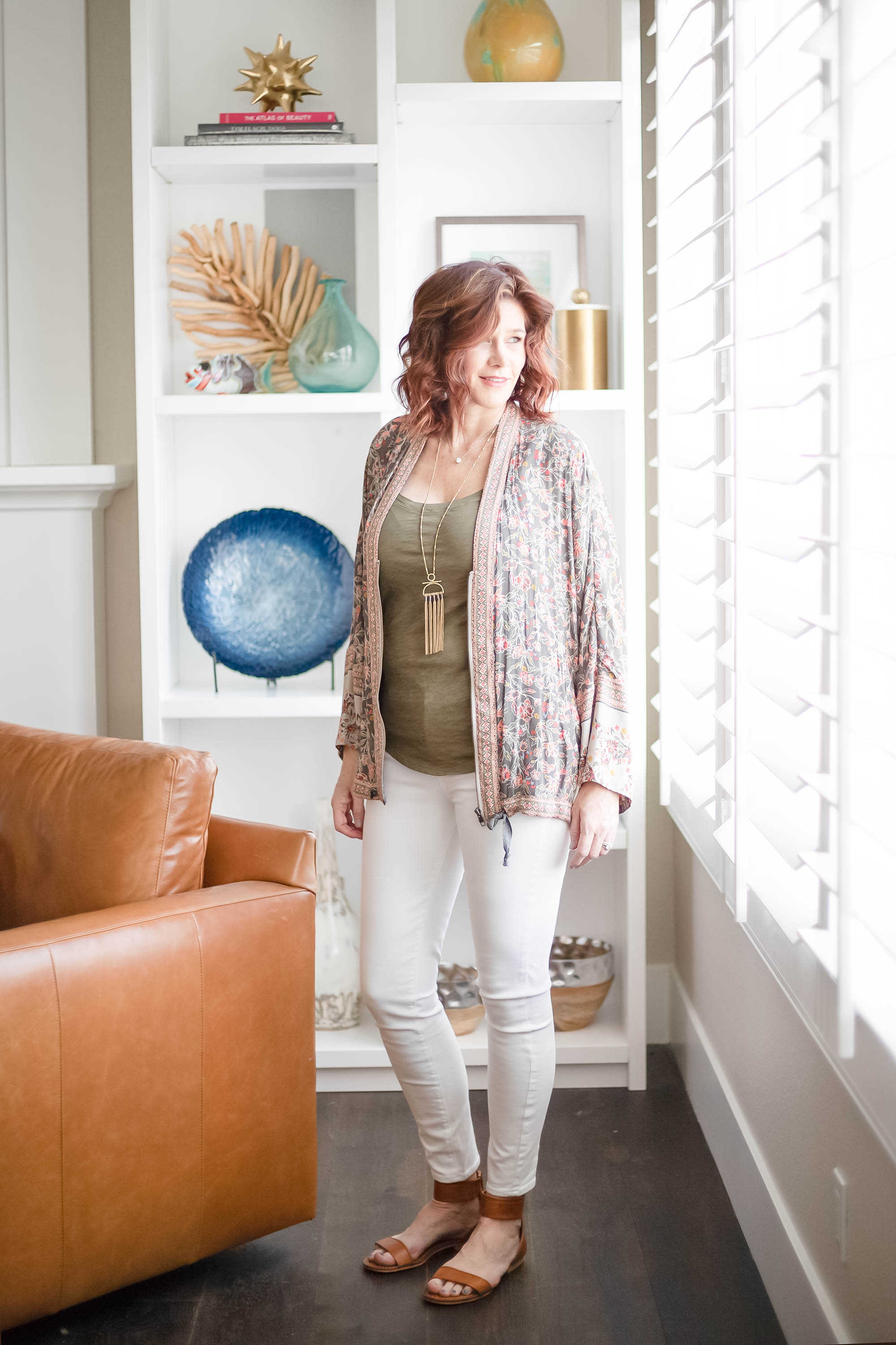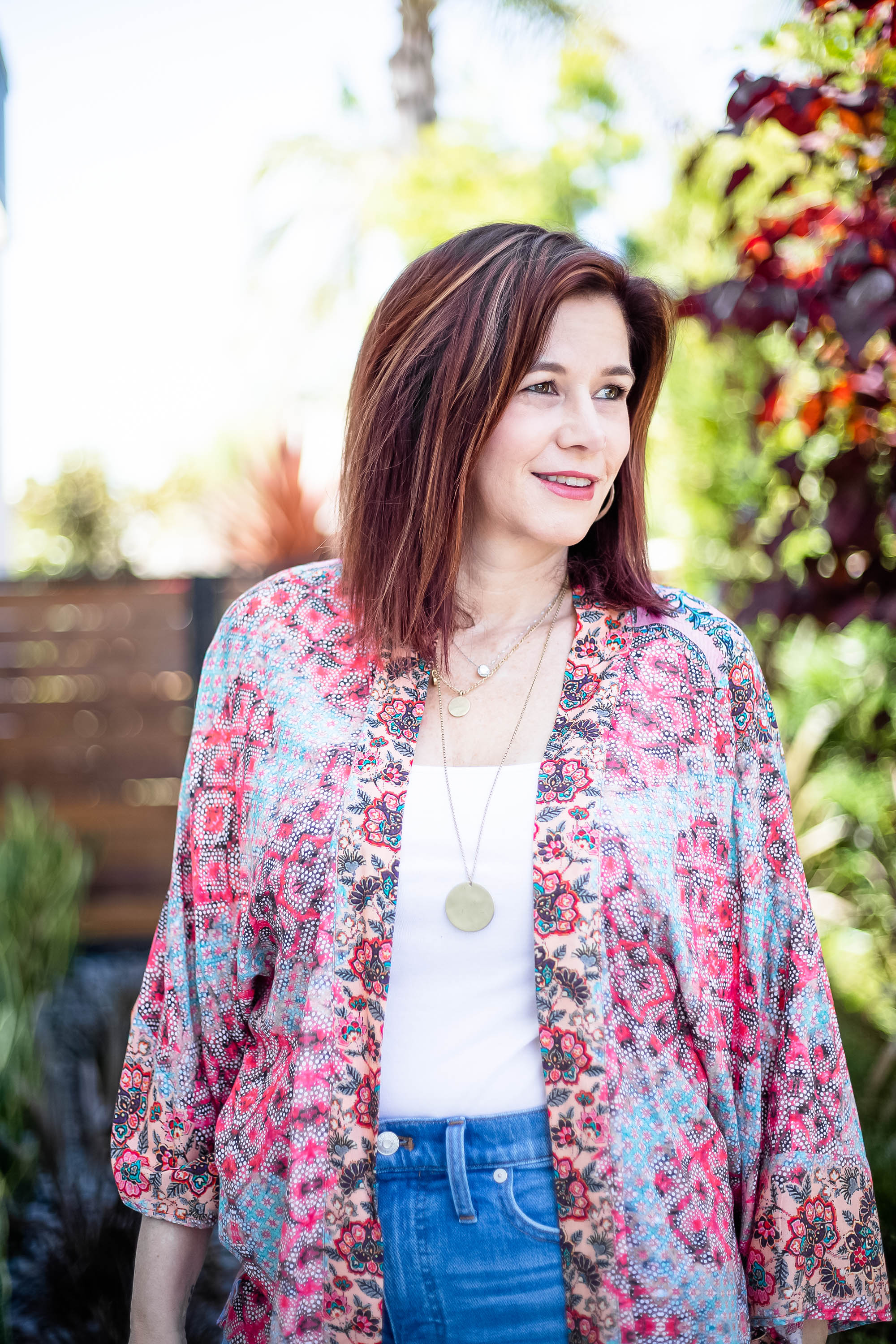 This year, I have several I plan to wear on repeat. We are headed to La Paz in a couple weeks and my kimonos are coming along with me. I can bring them all if I want. They are so easy to pack. For this post, I decided to show you how you can style two different types of kimonos: one dressy and one casual.