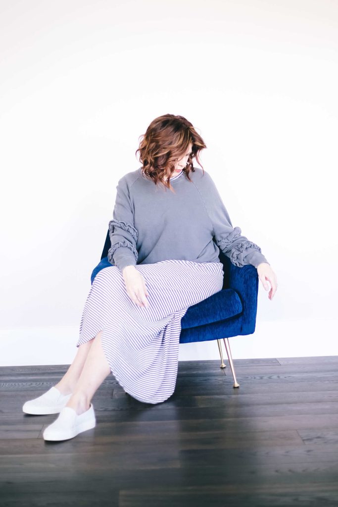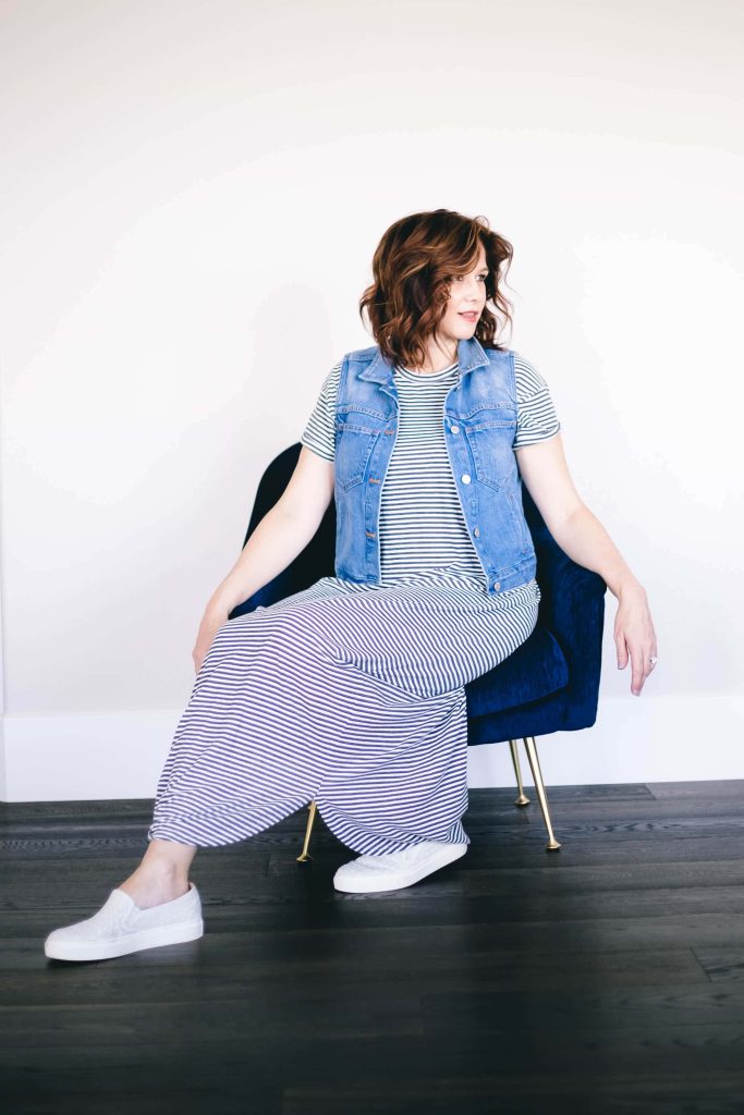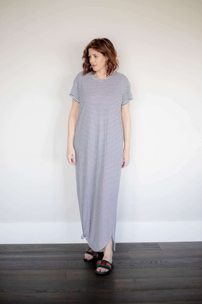 On their web site they state, “they want to create best friends for your closet”. Each piece has that comfortable quality that instantly puts you at ease. The items are a bit pricey but each item I have, is one of my favorites in my closet including this Boxy Crew Striped Tee. They wash easily and look fabulous wear after wear. There are a ton of great ways to wear this dress. Here are a few ways I styled it.