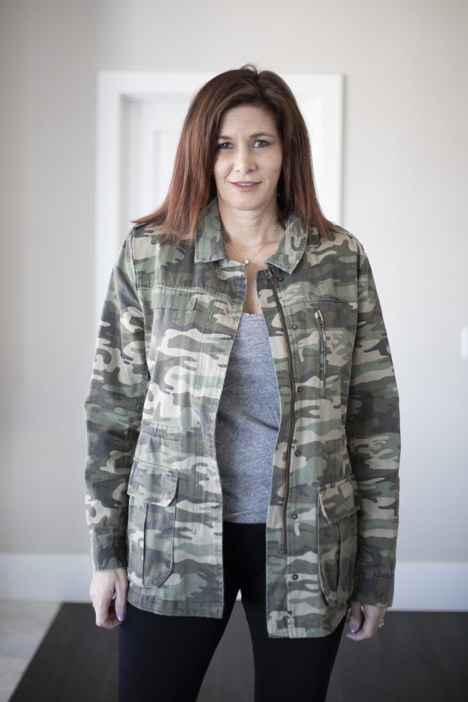 - Color – Another thing to consider is what color is best for your wardrobe. I have several utility jackets in olive green because it works nicely with all my black clothing. I also have jackets in black, camo and grey. Camouflage is another of my favorites, as you all know. A good camo jacket will go with just about anything. Treat it like a neutral. This season the utility jacket is trending and comes in a ton of colors including a buttery beige (if you are into the all-beige trend), pink, rust and denim. Pick a neutral which will go well with your existing wardrobe.