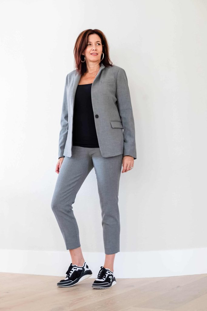 A suit isn’t just for the office any more. It is a quick and easy outfit for everyday. I will be sporting these suits all winter. They are perfect for travel as you can use the pieces together or with other outfits. A suit fits right in with a casual lifestyle. One of my favorite ways to wear a blazer casually is to add a hoodie underneath. The combo of hoodie and blazer makes for a warm outfit in the winter months. Another simple option is add your favorite tank or silk camisole for a sleek and stylish look.